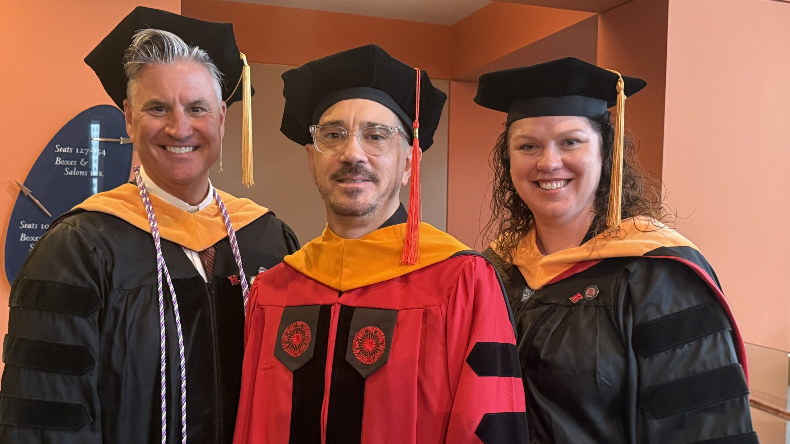 Pictured at a Rutgers School of Nursing graduation celebration (L-R) are Nurse Anesthesia program leaders Dr. Thomas Pallaria, assistant professor and program director; Dr. Michael McLaughlin, assistant professor and assistant program director; and Dr. Maureen McCartney Anderson, assistant professor and assistant program director.